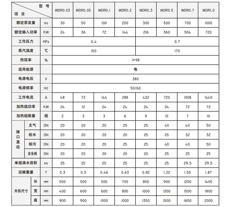 WDR電蒸汽發(fā)生器采用低表面熱負荷電熱元件,每一元件均進行水壓及耐電壓試驗;接上電源及水源后即可工作。安靜、清潔,符合環(huán)保的要求,不會向大氣排放NOx(氮氧化合物)。電蒸汽發(fā)生器操作簡便,一鍵啟動、停止,3分鐘出蒸汽,運行負荷調節(jié)范圍大,維護簡便。每組電熱元件采用集中束型法蘭連接,獨立設置,機械強度高,安全可靠,更換方便,使用壽命長等特點。