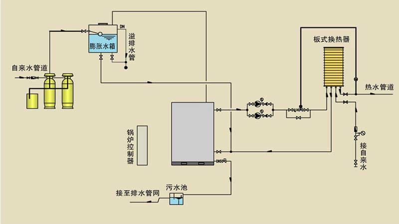 4、控制器對壓力自動(dòng)控制、演算、追蹤,可在負(fù)荷變化時(shí)對給水泵、電加熱管進(jìn)行自動(dòng)啟??刂疲部墒謩?dòng)控制。