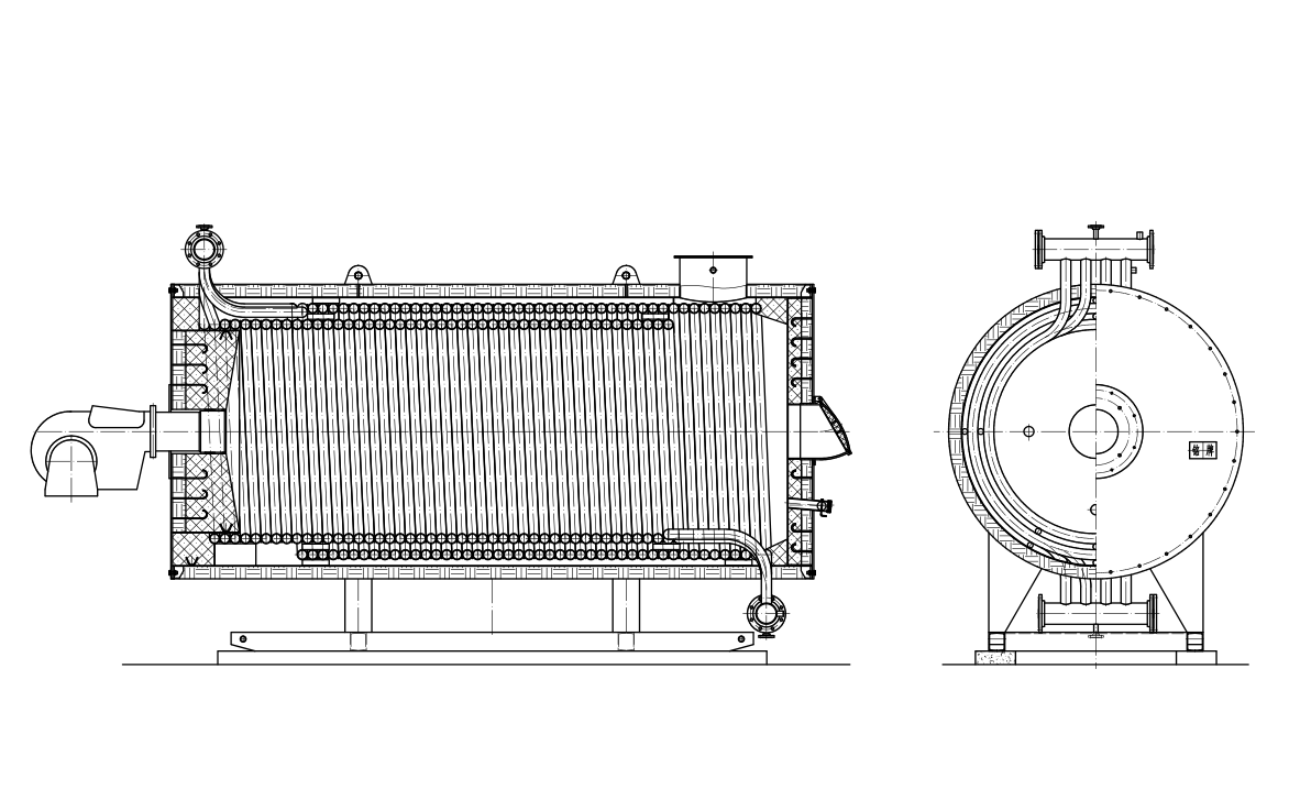 7、流程設計:煙氣三回程,介質流經內外盤管,流速均勻,運行安全、穩(wěn)定。